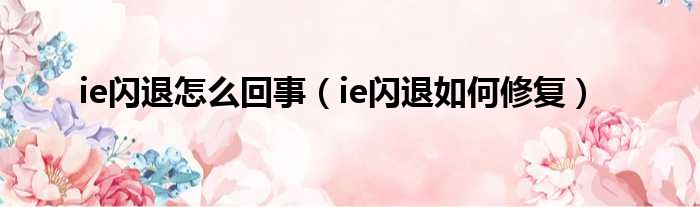 大家好,今天小六子来为大家解答以下的问题,关于ie闪退怎么回事,ie闪退如何修复这个很多人还不知道,现在让我们一起来看看吧!