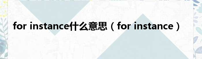 大家好,今天小六子来为大家解答以下的问题,关于for instance什么意思,for instance这个很多人还不知道,现在让我们一起来看看吧!