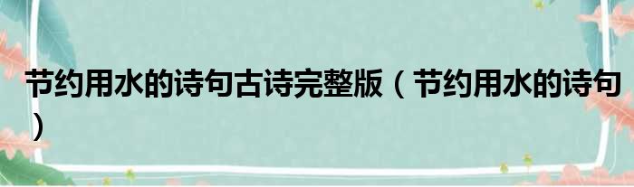 节约用水的诗句古诗完整版(节约用水的诗句)