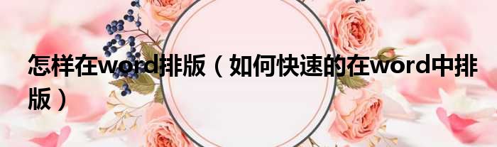 怎样在word排版(如何快速的在word中排版)
