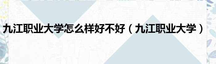 九江职业大学怎么样好不好(九江职业大学)