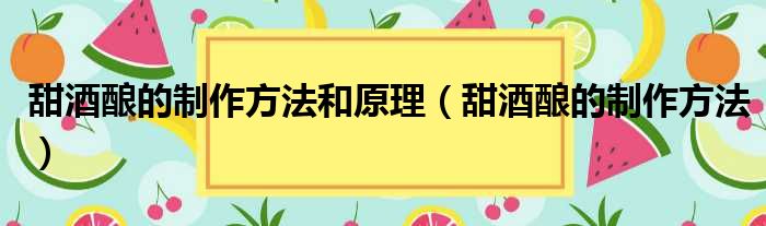 甜酒酿的制作方法和原理(甜酒酿的制作方法)