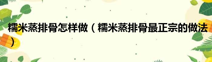 导读 大家好,今天小六子来为大家解答以下的问题,关于糯米蒸排骨怎样做,糯米蒸排骨最正宗的做法这个很多人还不知道,现在让我们一起来看看吧!1