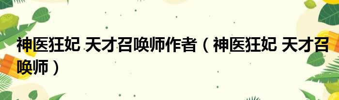 导读 大家好,今天小六子来为大家解答以下的问题,关于神医狂妃 天才召唤师作者,神医狂妃 天才召唤师这个很多人还不知道,现在让我们一起来看