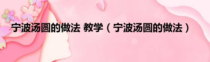 宁波汤圆的做法 教学(宁波汤圆的做法)