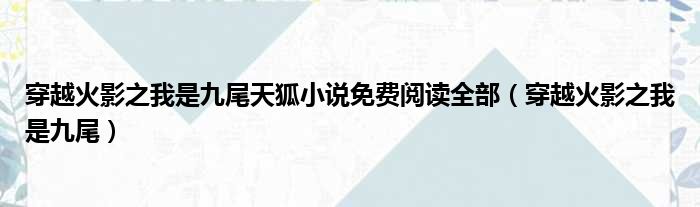 穿越火影之我是九尾天狐小说免费阅读全部(穿越火影之我是九尾)