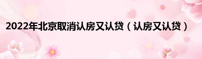 大家好,今天小六子来为大家解答以下的问题,关于2022年北京取消认房又认贷,认房又认贷这个很多人还不知道,现在让我们一起来看看吧!