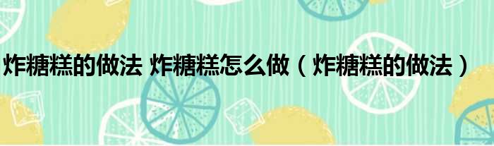 炸糖糕的做法 炸糖糕怎么做(炸糖糕的做法)
