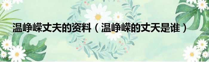导读 大家好,今天小六子来为大家解答以下的问题,关于温峥嵘丈夫的资料,温峥嵘的丈天是谁这个很多人还不知道,现在让我们一起来看看吧!1、目前
