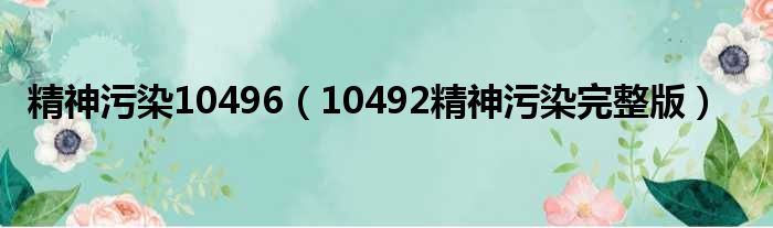 大家好,今天小六子来为大家解答以下的问题,关于精神污染10496,10492精神污染完整版这个很多人还不知道,现在让我们一起来看看吧!