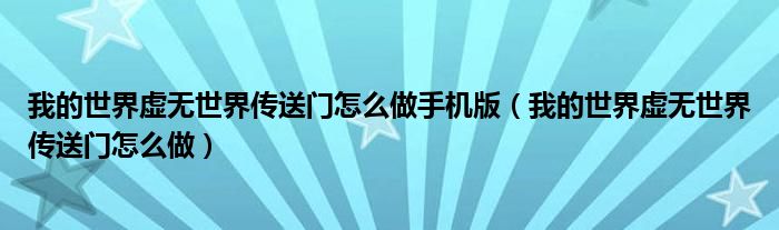 我的世界虚无世界传送门怎么做手机版(我的世界虚无世界传送门怎么做)