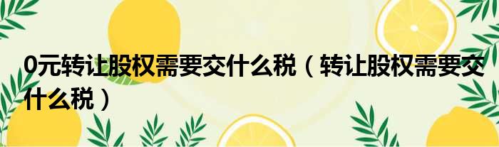 0元转让股权需要交什么税(转让股权需要交什么税)