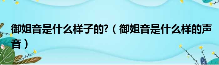 御姐音是什么样子的?(御姐音是什么样的声音)