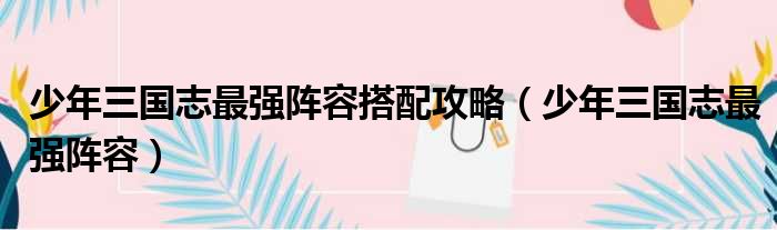 少年三国志最强阵容搭配攻略(少年三国志最强阵容)
