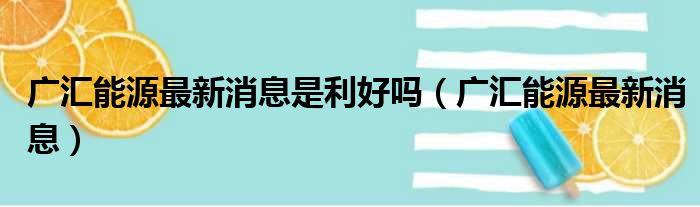 广汇能源最新消息是利好吗(广汇能源最新消息)
