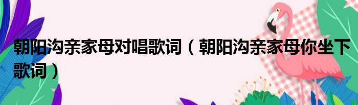 大家好,今天小六子来为大家解答以下的问题,关于朝阳沟亲家母对唱歌词,朝阳沟亲家母你坐下歌词这个很多人还不知道,现在让我们一起来看看吧!