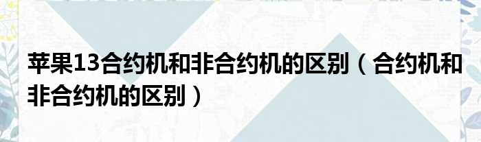 苹果13合约机和非合约机的区别(合约机和非合约机的区别)
