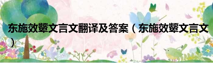 东施效颦文言文翻译及答案(东施效颦文言文)