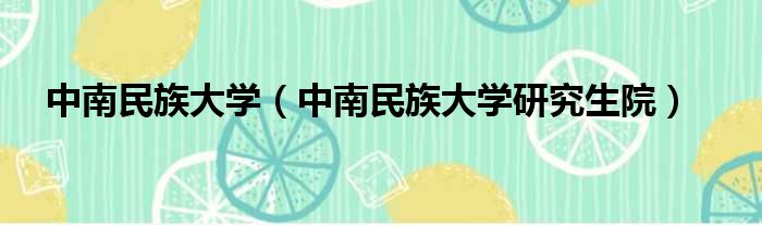 大家好,今天小六子来为大家解答以下的问题,关于中南民族大学,中南民族大学研究生院这个很多人还不知道,现在让我们一起来看看吧!