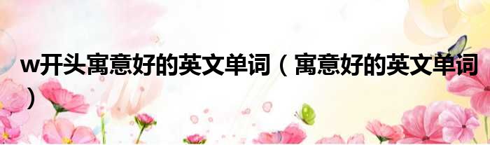 大家好,今天小六子来为大家解答以下的问题,关于w开头寓意好的英文单词,寓意好的英文单词这个很多人还不知道,现在让我们一起来看看吧!