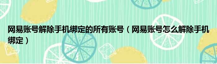网易账号解除手机绑定的所有账号(网易账号怎么解除手机绑定)