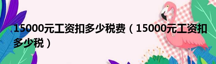 大家好,今天小六子来为大家解答以下的问题,关于15000元工资扣多少税费,15000元工资扣多少税这个很多人还不知道,现在让我们一起来看看吧!