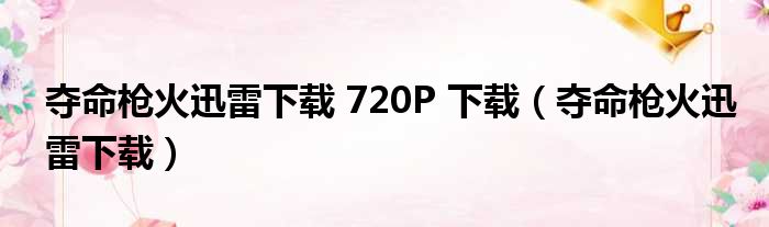 导读 大家好,今天小六子来为大家解答以下的问题,关于夺命枪火迅雷下载 720P 下载,夺命枪火迅雷下载这个很多人还不知道,现在让我们一起来看
