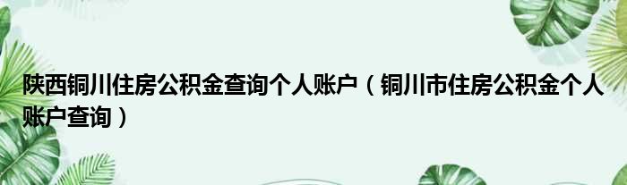 陕西铜川住房公积金查询个人账户(铜川市住房公积金个人账户查询)