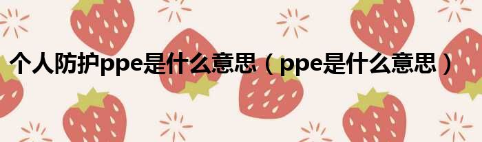 导读 大家好,今天小六子来为大家解答以下的问题,关于个人防护ppe是什么意思,ppe是什么意思这个很多人还不知道,现在让我们一起来看看吧!1、PP