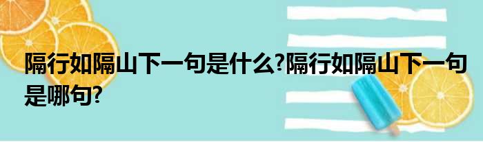 1、隔行如隔山下一句: 隔行不隔理【成语】隔行如隔山【读 音】:gé háng rú gé shān【释 义】:指不是本行的人就不懂这一行业的门道。