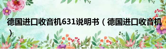 导读 大家好,今天小六子来为大家解答以下的问题,关于德国进口收音机631说明书,德国进口收音机这个很多人还不知道,现在让我们一起来看看吧!1