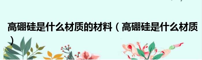 高硼硅是什么材质的材料(高硼硅是什么材质)
