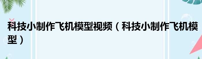 科技小制作飞机模型视频(科技小制作飞机模型)