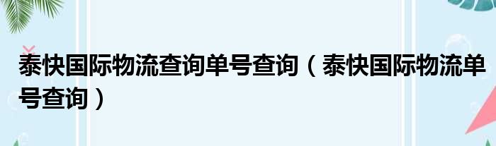 泰快国际物流查询单号查询(泰快国际物流单号查询)