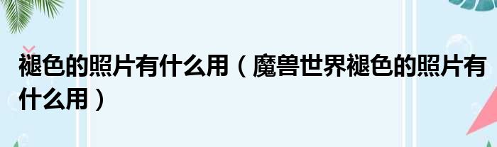 褪色的照片有什么用(魔兽世界褪色的照片有什么用)