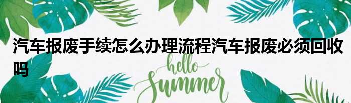 导读 大家好,今天小六子来为大家解答以下的问题,关于汽车报废手续怎么办理流程汽车报废必须回收吗这个很多人还不知道,现在让我们一起来看看吧