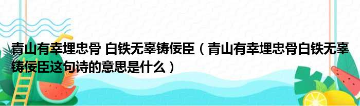 青山有幸埋忠骨 白铁无辜铸佞臣(青山有幸埋忠骨白铁无辜铸佞臣这句诗的意思是什么)