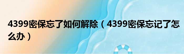 4399密保忘了如何解除(4399密保忘记了怎么办)