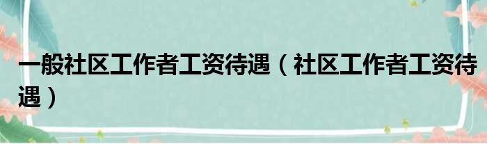 一般社区工作者工资待遇(社区工作者工资待遇)