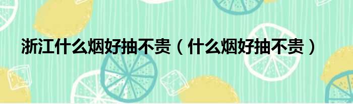 浙江什么烟好抽不贵(什么烟好抽不贵)
