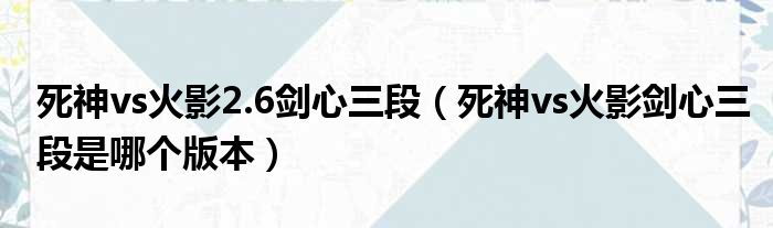 死神vs火影2.6剑心三段(死神vs火影剑心三段是哪个版本)