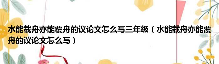 水能载舟亦能覆舟的议论文怎么写三年级(水能载舟亦能覆舟的议论文怎么写)