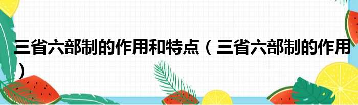 导读 大家好,今天小六子来为大家解答以下的问题,关于三省六部制的作用和特点,三省六部制的作用这个很多人还不知道,现在让我们一起来看看吧!1