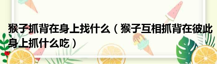 导读 大家好,今天小六子来为大家解答以下的问题,关于猴子抓背在身上找什么,猴子互相抓背在彼此身上抓什么吃这个很多人还不知道,现在让我们一