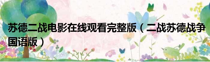 苏德二战电影在线观看完整版(二战苏德战争国语版)