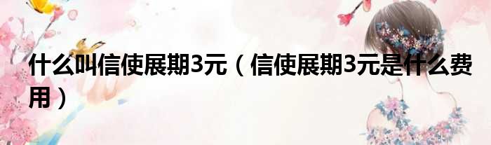 导读 大家好,今天小六子来为大家解答以下的问题,关于什么叫信使展期3元,信使展期3元是什么费用这个很多人还不知道,现在让我们一起来看看吧!1