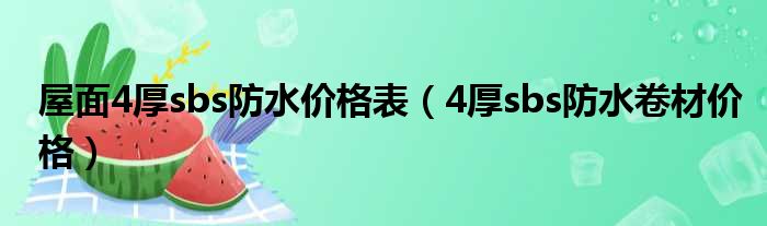 导读 大家好,今天小六子来为大家解答以下的问题,关于屋面4厚sbs防水价格表,4厚sbs防水卷材价格这个很多人还不知道,现在让我们一起来看看吧!1