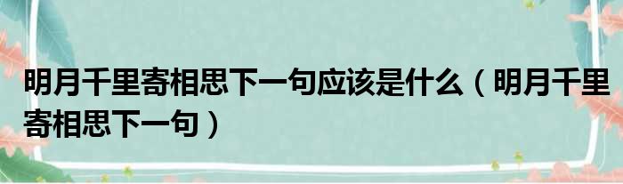明月千里寄相思下一句应该是什么(明月千里寄相思下一句)