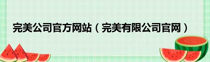 完美公司官方网站(完美有限公司官网)