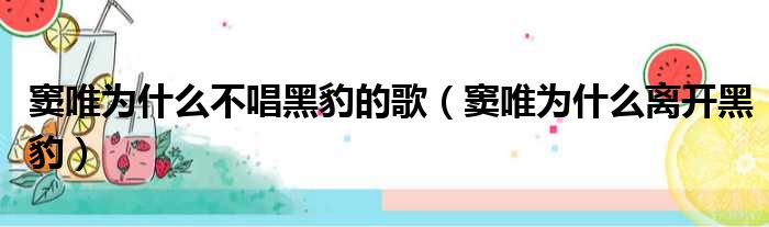窦唯为什么不唱黑豹的歌(窦唯为什么离开黑豹)